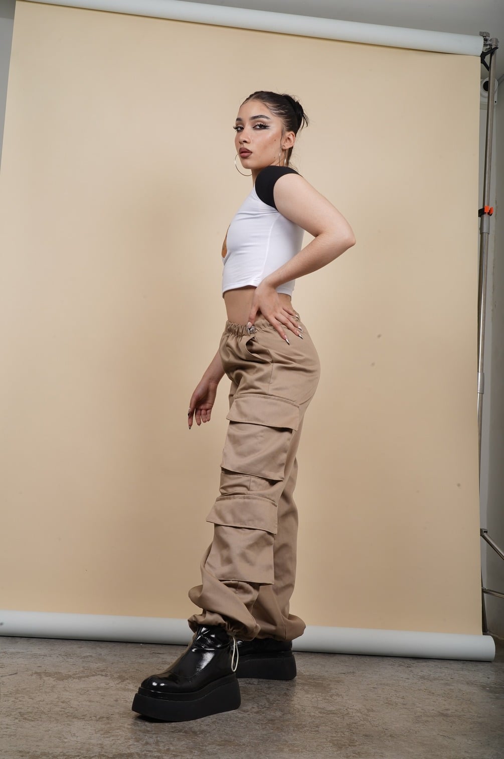 Este pantalón tipo cargo presenta un diseño cuidadosamente elaborado que combina comodidad y estilo a la perfección. Con una silueta favorecedora y una cintura elástica, se adapta a todas las formas y tallas, proporcionando un ajuste cómodo y seguro. Los bolsillos cargo, emblemáticos de este estilo, no solo añaden un toque de utilidad, sino también un elemento de moda que acentúa el diseño.